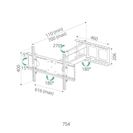 • זרוע לקיר - עם 4 תנועות (3 מפרקים).